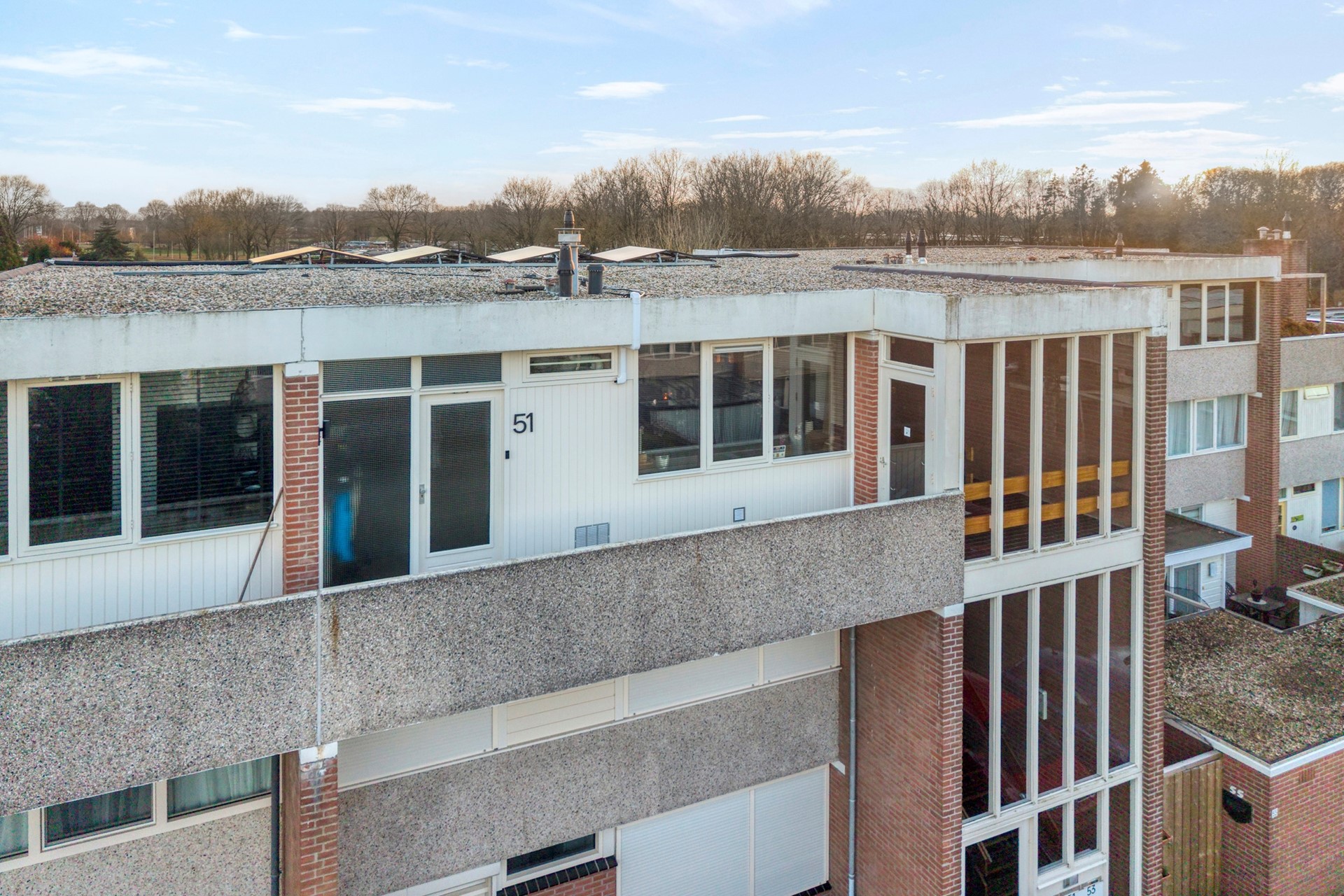 Zeer ruim balkon. Op het zuiden gelegen met prachtig uitzicht over de woonwijk.